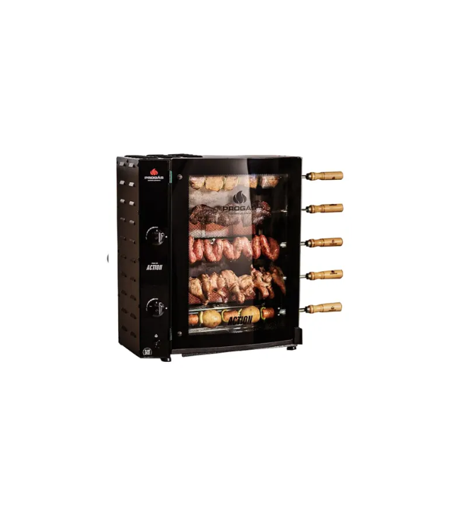 COD:27501 INFORMAÇÕES TÉCNICAS Marca: Progás Modelo:PRAC-05 I/T Capaciade:5 espetos Consumo médio:0,03kW/h Potência:30W MEDIÇÕES DO PROUTO Altura:647 Largura:750 Profundidade:330 Peso liquído:16kg